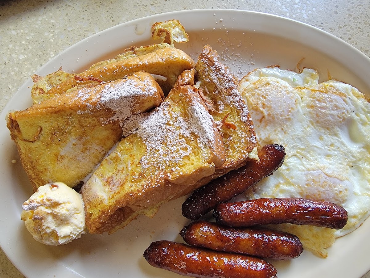 Why is the French toast sooo good? My French toast breakfast was amazing. Eggs cooked perfectly over easy for sausages and amazing French toast.